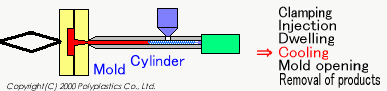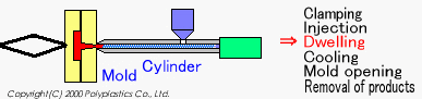 池流經噴嘴、注入口、澆道、澆口而進入模穴,完成充填程序。