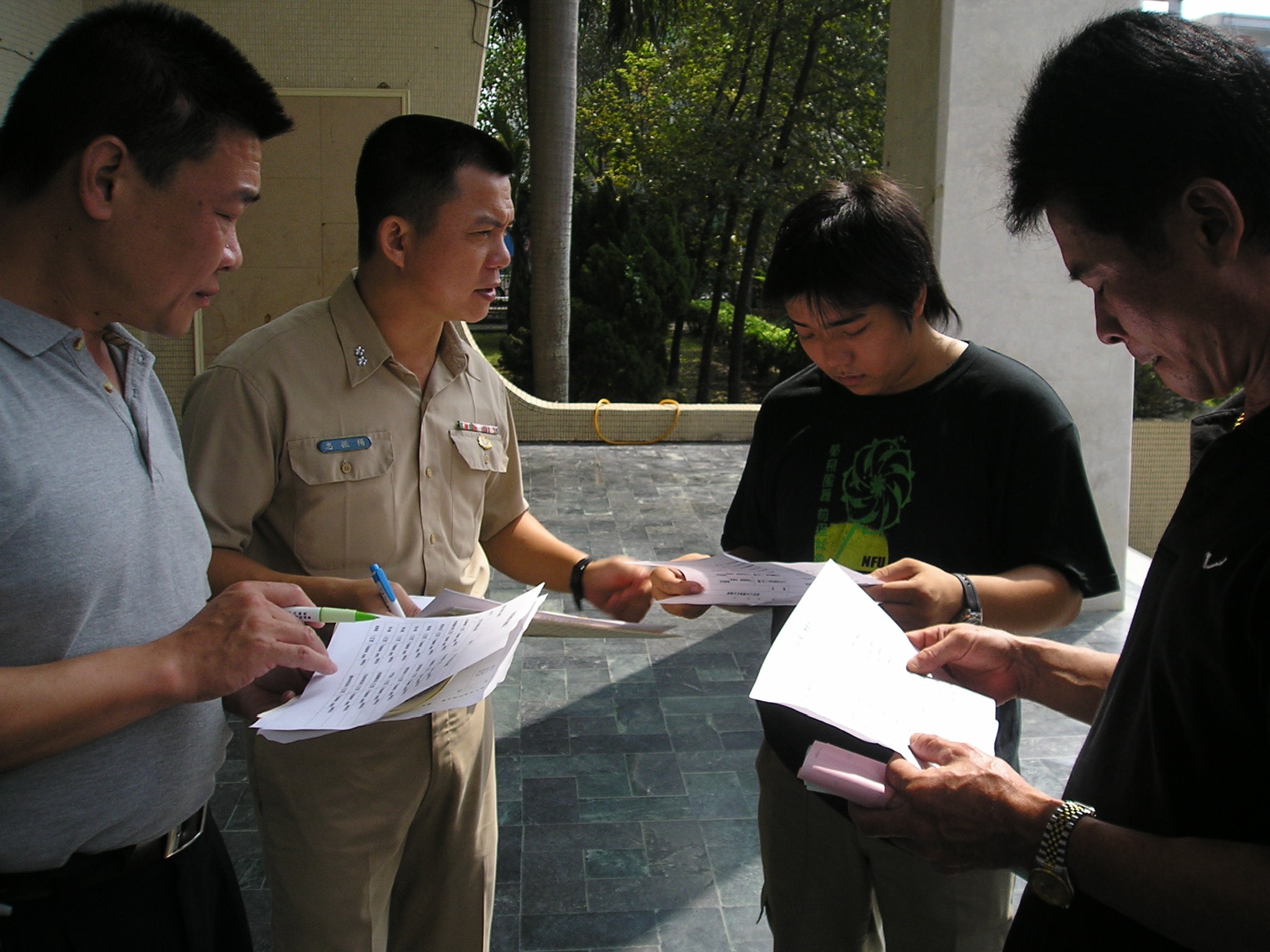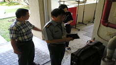 96年9月12日於學生宿舍區舉行本校「96學年度第1學期宿舍設施安全檢查」活動,由軍訓主任主持,參加人員有生輔組長、教官、職員、管理員及宿舍大工讀生共15人參與宿舍設施安全檢查編組。