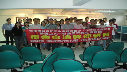 新學年度即將展開,配合教育部特色主題計畫於九月十四日舉辦了宿舍自治幹部研習活動,藉此讓宿舍自治幹部在新學年度來臨前能於最短時間內了解幹部之責任,更進一步能為住宿舍同學們用心管理及服務。