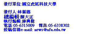 任何形式之轉載,請先與國立虎尾科技大學秘書室聯繫。
