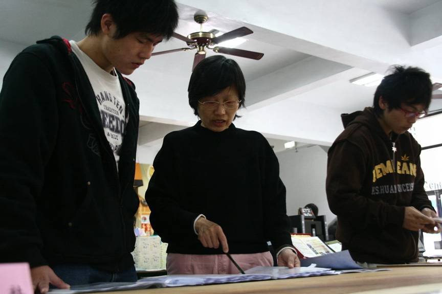 評鑑老師之ㄧ廖淑斐小姐(中) 細心指導社團財務資料 |
