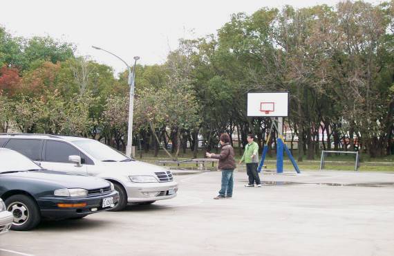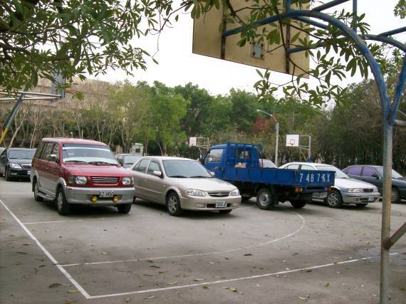 籃球場臨時停車場在宿治會幹部之導引下井然有序排列