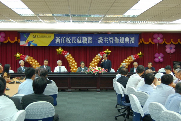 本校新任校長暨一級主管佈達典禮,8月5日上午在行政大樓六樓第一會議室舉行,上銀科技董事長卓永財、銀泰科技董事長白永耀等40多名產業界人士;工研院副院長吳東權、行政院政務顧問涂金助、虎尾科技大學歷任校長張天津、林振德、虎尾鎮長林文彬,以及中華民國精密機械發展協會、精密機械研究發展中心、中油煉製研究所、全國大專校院和高中職伙伴學校多位學界人士均蒞臨與會。