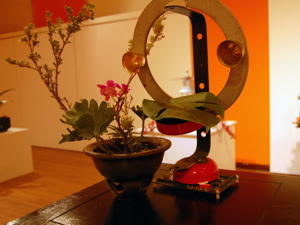 藝術中心「『鋼與柔之間』機械與藝術的對話」展覽,5月12日下午舉行開幕活動,展出各式工程零件與花藝結合的作品共16件,擔任作品花藝指導的美國花藝學會老師蔣企喻特別到場問候致意,副校長沈金鐘、藝術中心主任王文瑛、車輛工程系主任翁豊在、休閒遊憩系主任林俊男以及休閒遊憩系老師李彥希等均與會,與數名參與創作的同學共享創作的喜悅。