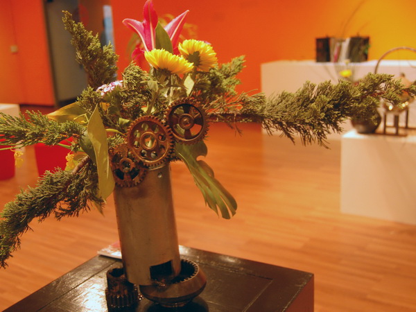 此次展出作品由藝術中心、休閒遊憩系、車輛工程系、機械設計系及總務處保管組共同合作,蒐集校內廢棄物品如車輪、齒輪、電腦晶片版、廢棄燈罩等,讓同學在駐校藝術家的指導及創意激盪下,轉化為具實用及觀賞價值的花器,再搭配各種花木植栽,讓每件作品都充滿了生命力,文理學院院長侯錦雄及休閒遊憩系主任林俊男的創作也陳列於展場中。