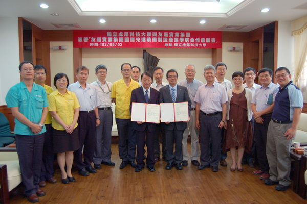 本校與友嘉實業集團9月2日上午簽定合作意願書,雙方共同規劃成立「友嘉集團國際先進裝備製造產業學院」,由該集團投入產業學院基金做為人才培育與技術研發用途。友嘉集團總裁朱志洋表示,友嘉集團有四個事業群,全球七十五個事業體,遍布全球八個國家,主要發展工具機相關領域。友嘉集團與本校合作辦理產業學院,在學生培育、產品開發、研發技術等領域均能共同提升,學校、企業、教師與學生的結合才能真正構成完整的「互聯網」。