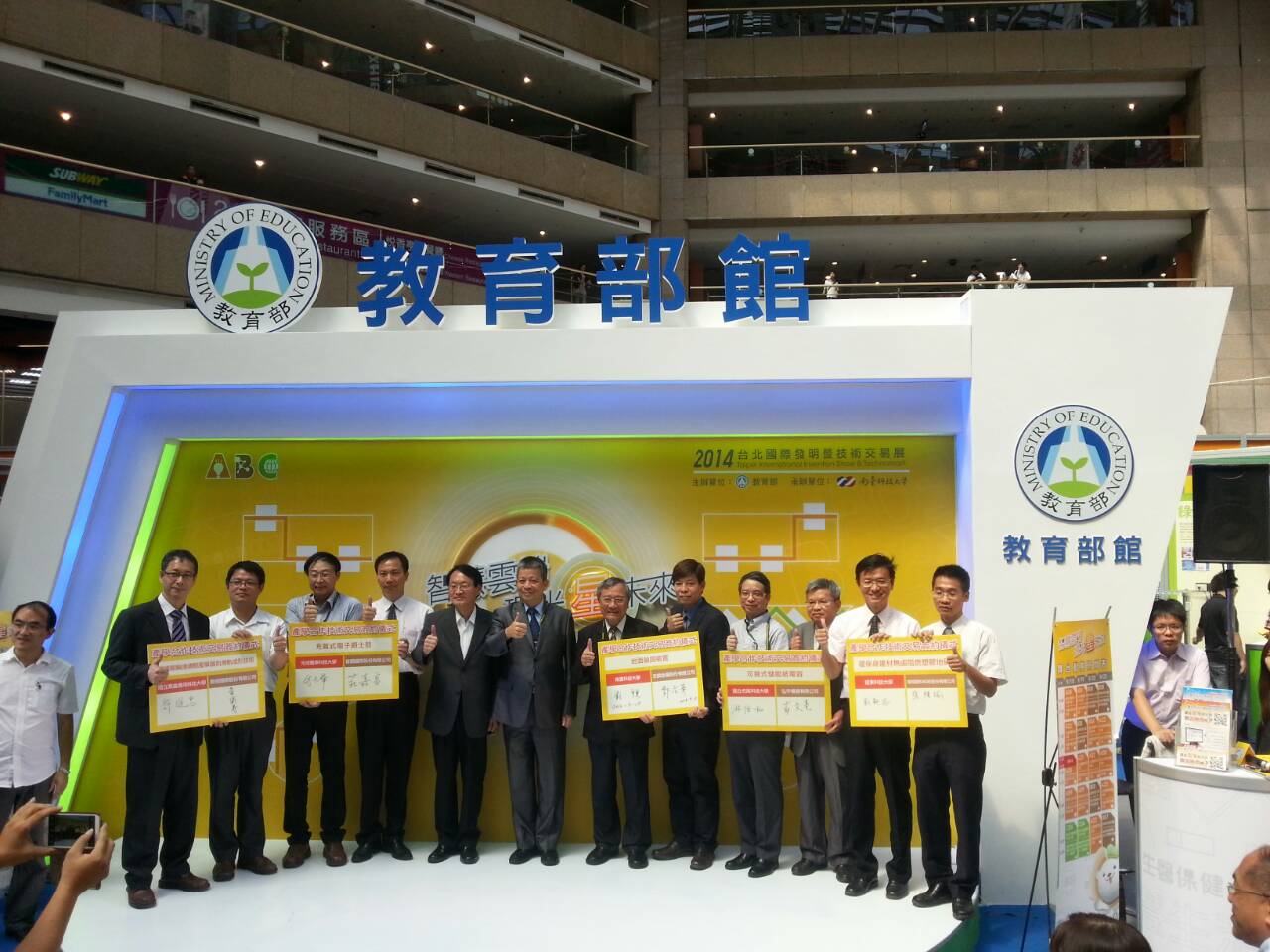 另外,本校亦於「台北國際發明暨技術交易展-教育部館」展出3件作品,分別為機電輔系許坤明老師『可攜式超音波熔接機及其教學設備』、光電系謝振榆老師『可撓式儲能紙電容』、電機系劉煥彩老師『閥體裝置/監控型高壓用消防蝶閥』,其中,作品『可撓式儲能紙電容』更獲得廠商青睞,作品發明人:謝振榆老師、游信和老師在教育部館產學簽約儀式上與弘宇儀器有限公司進行簽約,作品預計產生300萬元的經濟效益。
