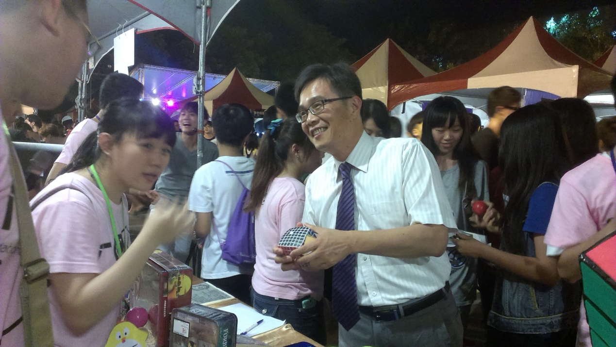 校長於開幕式親臨會場,勉勵同學當一個會玩又會唸書的虎科人,培養自己的軟實力,同時參與各社團攤位的活動,與同學同樂,並參加畢聯會所辦理的體會漸凍人活動、以及益智遊戲社的九階魔術方塊、與Cosplay社自製的星際戰士終結者合影等,同時邀請掌中技藝社參與2015年在本校所舉辦的國際研討會,展演國粹。