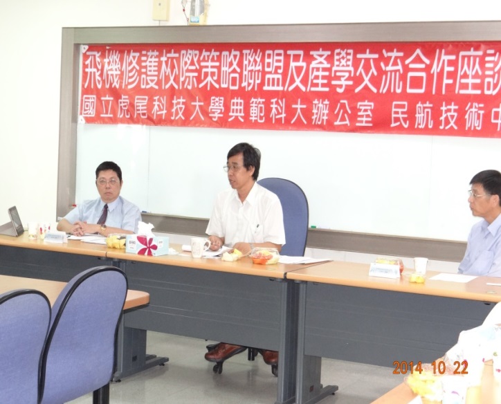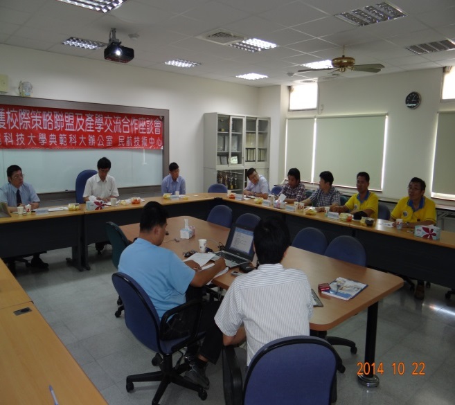 本校飛機系執行教育部典範科技大學計畫民航技術中心於103年10月22日邀請國內航空公司及全國高職飛機修護科蒞校進行校際策略聯盟及產學交流合作座談會。