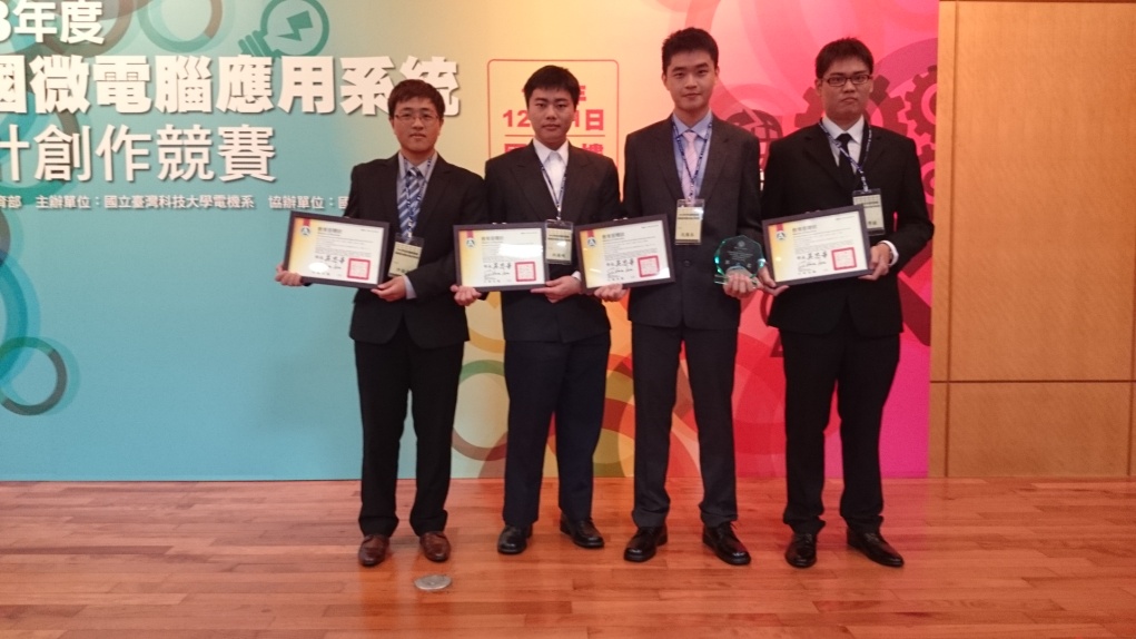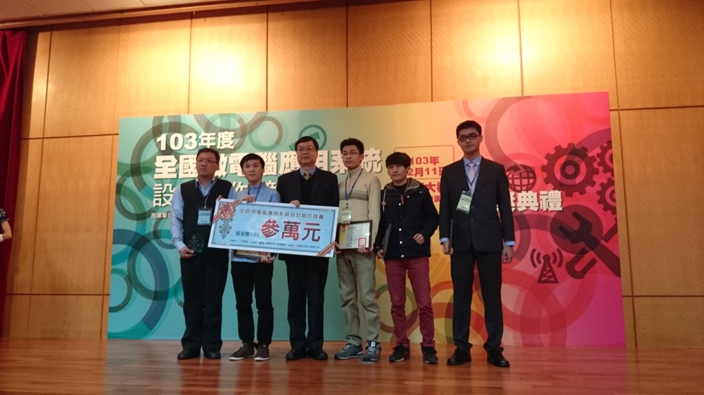 電機系張凱雄老師指導二技二甲沈國丞、洪國峻、許勛晉、呂學穎同學,製作專題成品「電子教學繪畫板」參加教育部所舉辦「103年全國微電腦應用系統設計創作競賽」,榮獲大專組第二名,並獲得獎金三萬元。