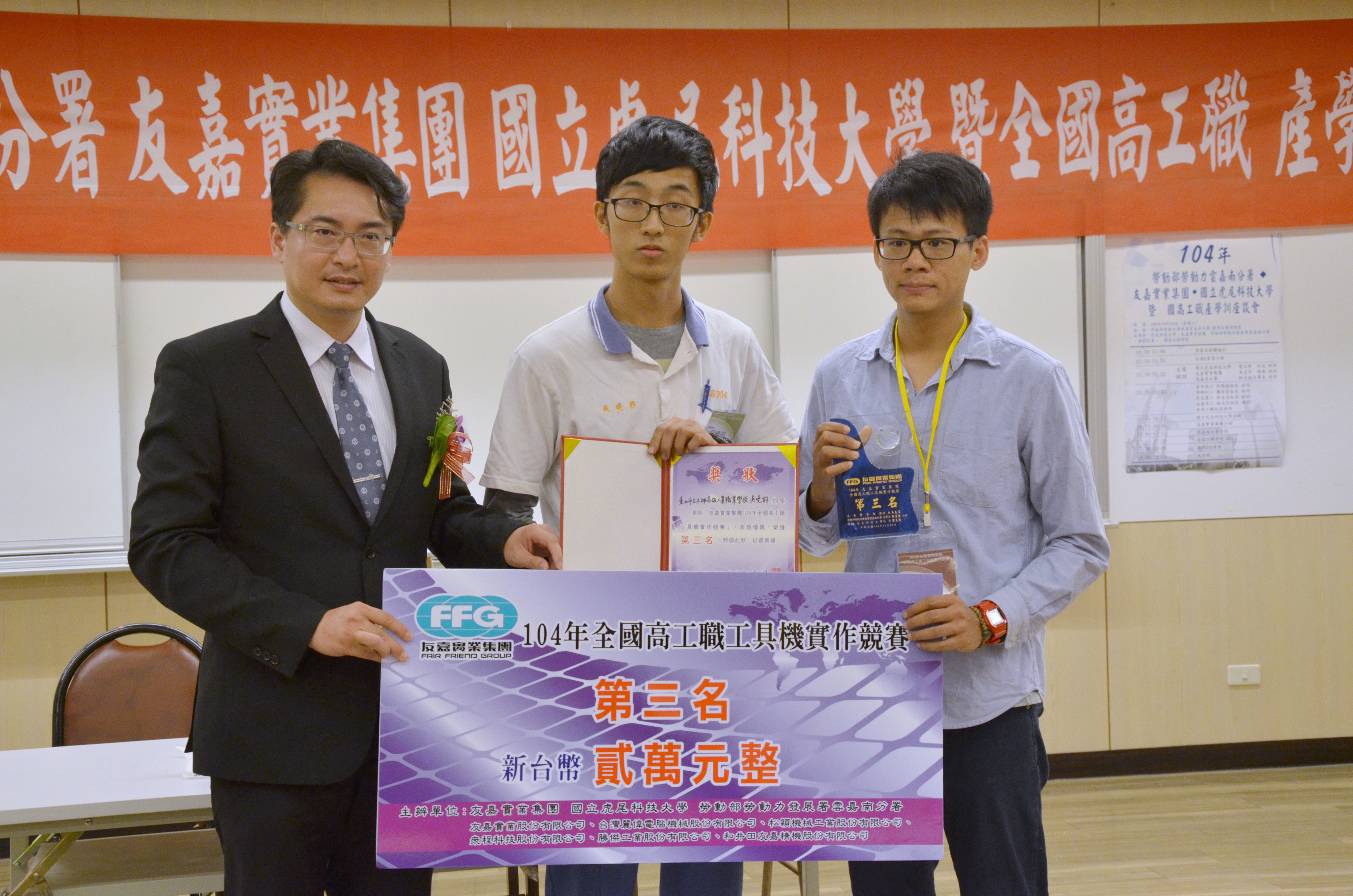 由勞動部勞動力發展署雲嘉南分署、友嘉實業集團及國立虎尾科技大學共同舉辦的「104年友嘉實業集團全國高工職工具機實作競賽」10月24日(六)在雲嘉南分署於官田的職業訓練場展開。