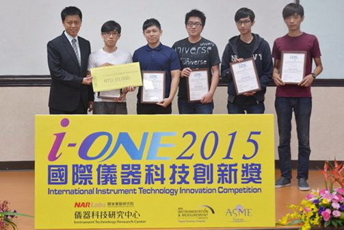 由國家實驗研究院儀器科技研究中心(Instrument Technology Research Center)主辦的「i-ONE國際儀器科技創新獎」已邁入第七屆。今年的i-ONE競賽專上組,由本校的自動化工程系覺文郁教授、陳俊仁助理教授與學生高譁豐、陳瑞翔、蕭建良、許翔甯、薛暄翰以「彈性筒夾加工前後對位及檢測儀器」獲得二獎,抱回5萬元獎金。