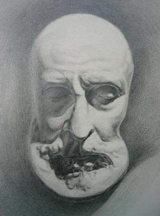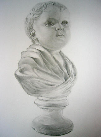 「克羅汀.吳東半身像」(1791年作)是吳東以自己的三女兒克羅汀(Claudine Houdon)為模特兒。小孩天真的眼神,小巧的鼻子、豐潤的雙唇、圓嘟嘟的面頰和雙下巴,令人不禁有向前捏搓一把的衝動。技法方面,吳東最重要的創舉是將整個眼球作立體處理,清楚地雕出眼球、瞳孔、眼線和眼窩的位置,使整個眼睛彷如會說話一般。這張素描我用淺淡鉛筆輕輕畫,表現小孩細嫩輕快的感覺。