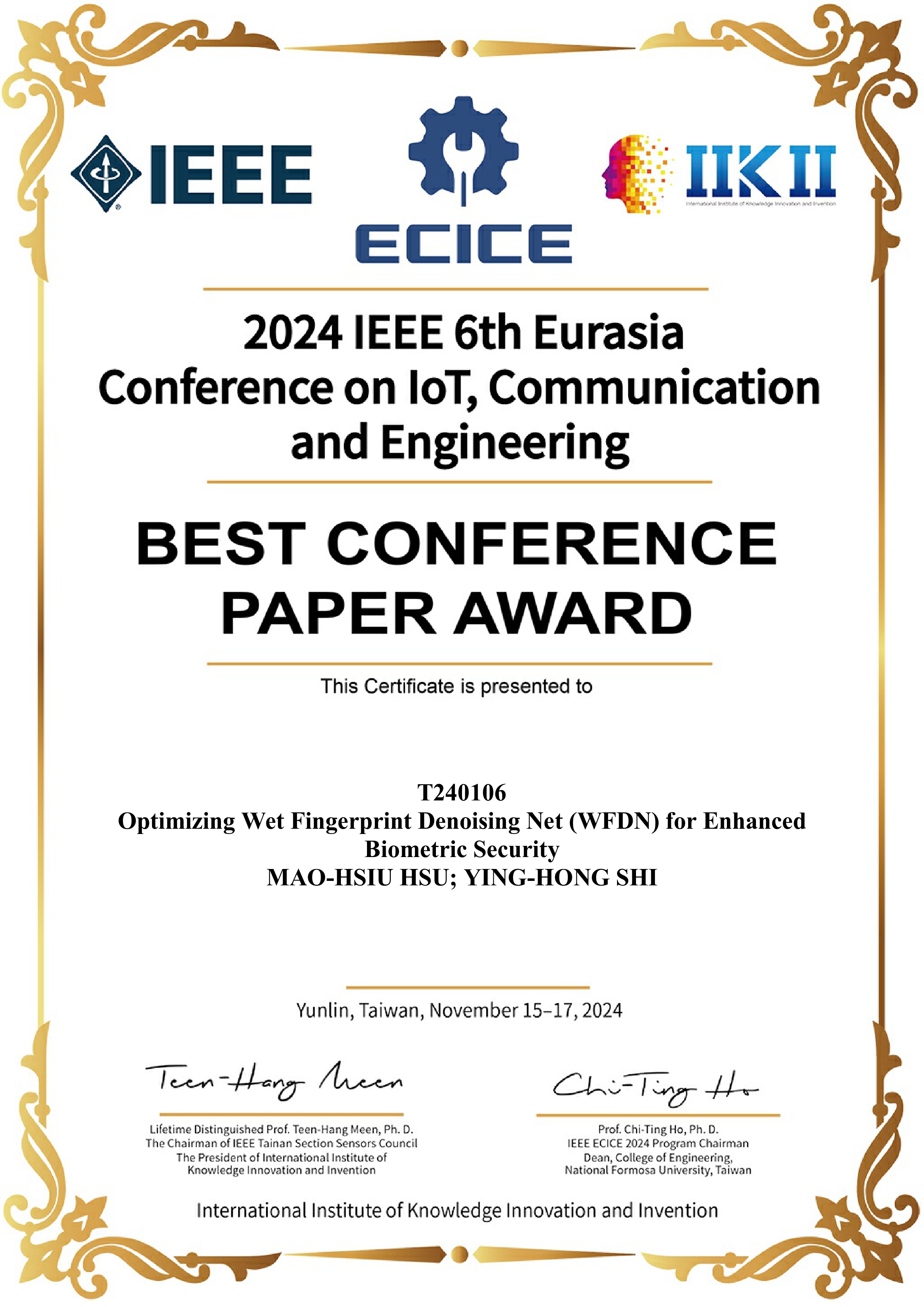 Machine Learning and Artificial Intelligence (AI) Systems.Please contact Mao-Hsiu Hsu (mh.hsu@nfu.edu.tw) as soon as possible about this opportunity.